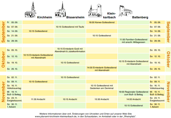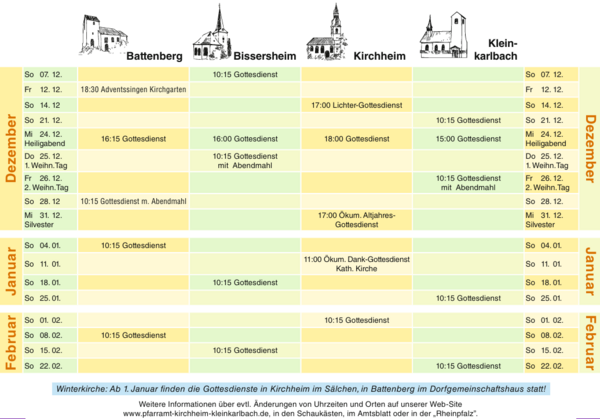 der Prot. Kirchengemeinden Kirchheim, Kleinkarlbach, Battenberg, Bissersheim, einmal pro Quartal mit Informationen aus den Kirchengemeinden und Tipps für Veranstaltungen.